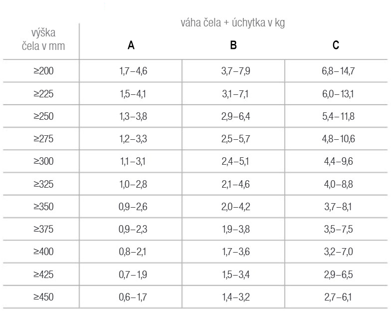 | Korpusz magassága (mm) | 200 - 450 |