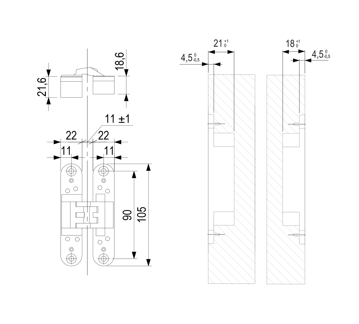Pánt falc nélküli ajtókra 3D állítási lehetőséggel . Magasság állítás, előre hátra +/- 3mm, oldalra +/- 1,5mm. Az ajtó maximális teherbírása 30 kg 2 db pántra. Választható tartozékok, rögzítő elemek a burkolatas vagy acél vázszerkezetekre. Szerelő sablon 256045 (keret) + 268077 (betétek)