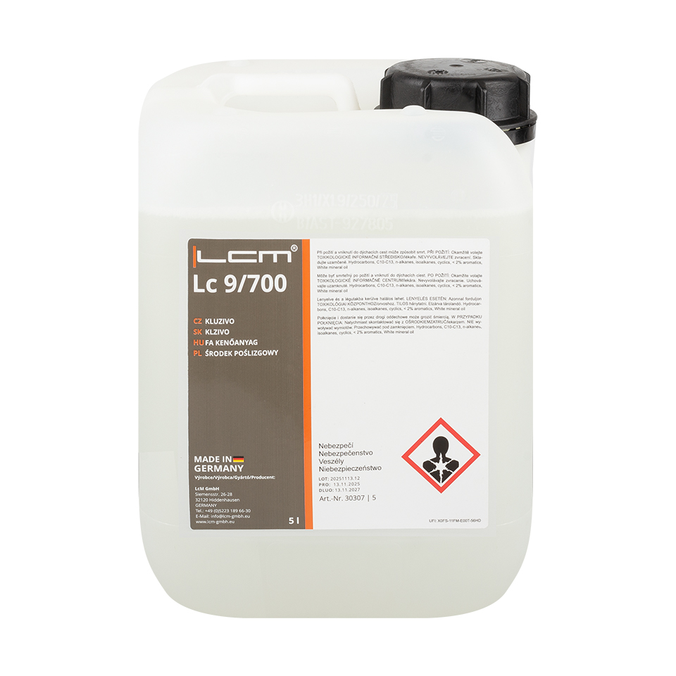 Kluzivo Lc 9/700, speciálně vyvinutý pro dřevozpracující průmysl, slouží k ochraně vašich strojů a obrobků před pryskyřicemi všeho druhu. Díky svému vynikajícímu vyhlazujícímu účinku zabraňuje kontaminaci vedlejšími produkty, jako jsou piliny nebo hobliny. Pozitivní vedlejší účinek spočívá v tom, že mazivo také chrání před korozí a hromaděním vlhkosti. Dle aktuální vyhlášky o nebezpečných látkách není Lc 9/700 klasifikován jako nebezpečný a neobsahuje hořlavé látky ani silikony. Lze jej aplikovat jak čerpadlem, tak ručně pomocí stříkací pistole nebo štětce.
