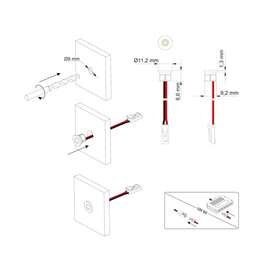 Malé bodové svítidlo STAR s chromovanou povrchovou úpravou. K dispozici ve 3 barvách světla: teplá bílá, neutrální a studená bílá, určené pro úzké vitríny nebo nábytkové sokly. Napájení 12V DC . Barva krytu - chrom. Výkon - 0,7W Barva světla - neutrální bílá (4000-4500K). Krytí IP20. Rozměr montážního otvoru - 9mm. Životnost - 30000 hodin. Počet cyklů zapnutí/vypnutí - 15000 . Doba svícení až do 60 % plného světelného toku - 1s . Práce se stmívači - Ano . CRI - míra podání barev -80. Délka kabelu - 2m, kabel zakončený koncovkou Mini. Světelný zdroj je součástí dodávky - Ano.
