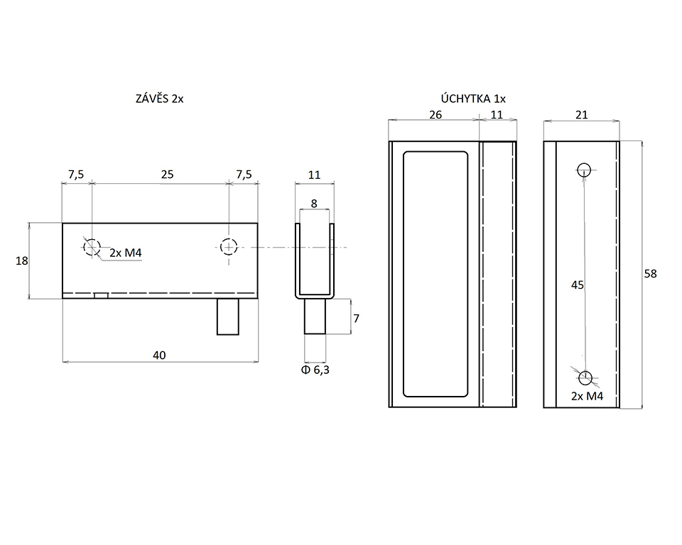 A készlet 2 pillér pántot tartalmaz üveg ajtóhoz, rám nélkül, fogantyúval. Üveg maximális vastagsága 5mm.