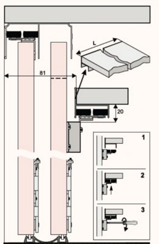 Profil ferde ajtós beépített szekrények elkészítésére. A polcra szerelendő, mint segéd vezetés szolgál. Görgőket kell hozzáadni: 98078 (Univerzal fogantyú profilokhoz - laminált lapok vas. 18mm). A szekrénynek minimálisan 3 szárnya kell hogy legyen! Rendelkezésre állnak görgők és kötő elemek rendszerhez laminált lapok vas. 10 mm/ üveg szett Everest Fox - kód 181590.
