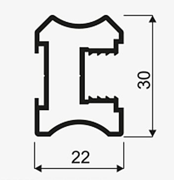 Fogantyú profil 10 mm FFL anyagra vagy üvegre 4mm 4,5mm, 6mm a 8mm (Üveg eseté tömítés használata szükséges az anyag vastagságától függően)