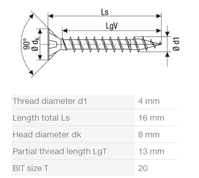 SPAX csavar 4x16 besüllyeszthető fej TXS, W, 4C MH