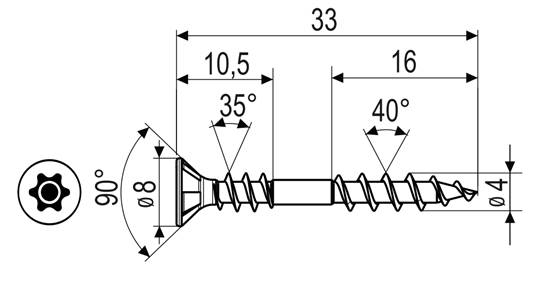 SPAX csavar 4x33 süllyesztett fejű TXS, W, 4C MH, dupla menetes (TUPL)