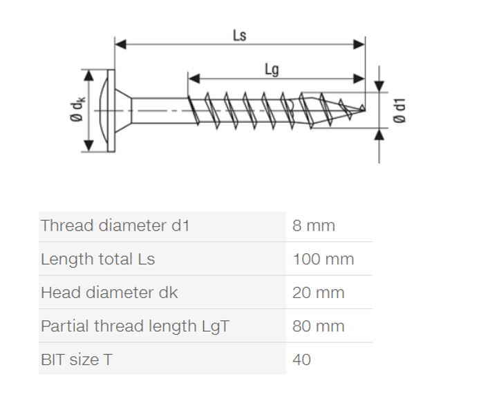SPAX csavar 8x100 tányérfejű TXS, W, 4C