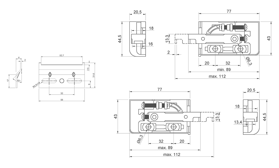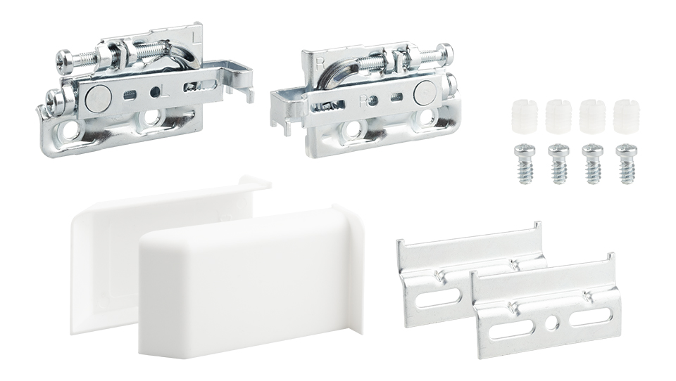 Helyreállító szerelvény fehér műanyag kupakkal, teherbírás 150 kg/pár. A készlet tartalmazza: - Pár fém függeszték - pár fehér műanyag sapka - 2 db horganyzott akasztólap 70x42x6mm - vastagság 2mm - 4db euro csavar - 4db tipli 10mm-es lyukhoz Magasságállítás +/- 8mm, mélységállítás +/- 10mm Egyes daraboknál a csatlakozó dübel elfordulhat a csatlakozó eurocsavarok becsavarásakor. Célszerű megfontolni a dübelek nélküli beépítést, kizárólag az 5 mm átmérőjű előre fúrt lyukakba helyezett eurocsavarok használatával. A terhelhetőség ezzel a beépítési módszerrel max. 80 kg/pár. Egy másik lehetőség, hogy a testben lévő lyukakat 9,5 mm átmérőjűre fúrja.
