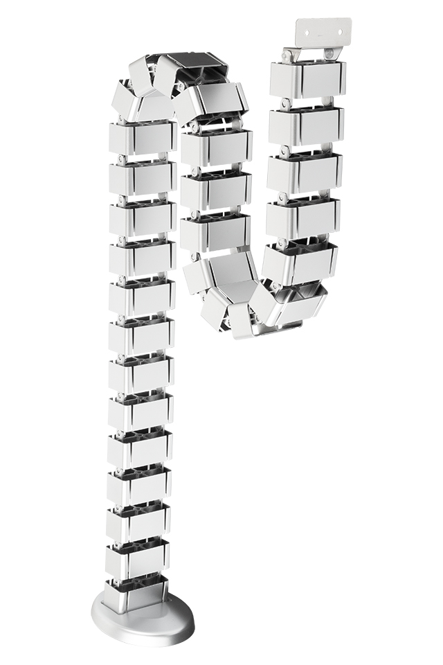 Vertikális kábelvezetés. Hossz: 1,26 m. Ezüst szín. Nagy rugalmasság az asztal magasságának változtatásakor. Ideális elektromosan állítható asztalvázakhoz.Szükség esetén a vezeték lerövidíthető.