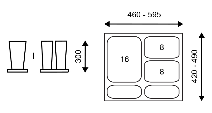 StrongBins szorter 1x16 + 2x8 l , 600 mm-es fiókban, antracit
