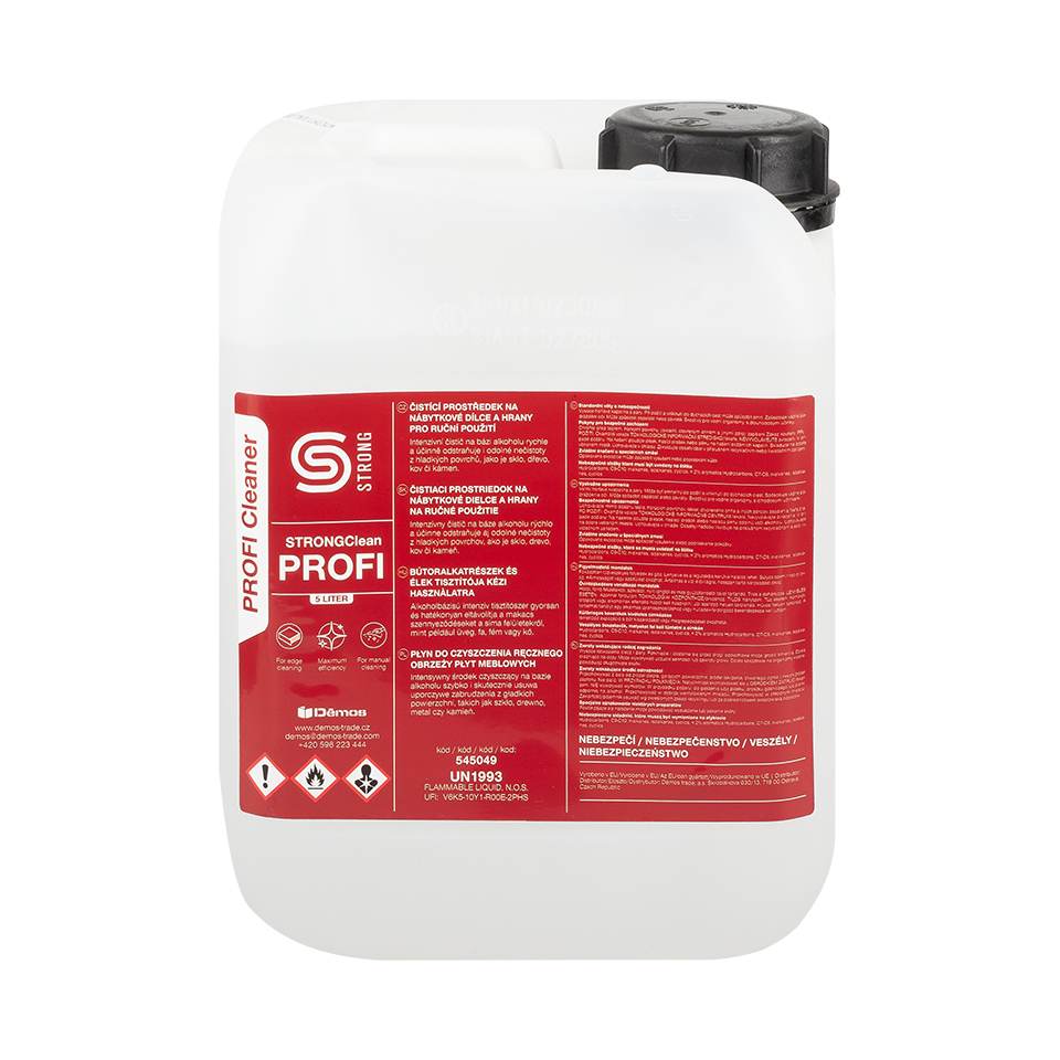 A StrongClean PROFI egy intenzív, alkoholtartalmú, folyékony tisztítószer citrusillattal, a legmakacsabb szennyeződések eltávolításához. Magas oldószertartalmának köszönhetően gyorsan feloldja a szennyeződéseket, mint például a gumimaradványok, bitumen, gyanta, olajok, ragasztómaradványok, filctoll-nyomok vagy karcolások. A matt és fényes felületek végső tisztításához használja a StrongClean FINISH terméket.