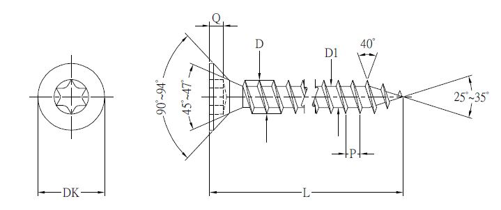Csavar 3,5x25 felület: fehér cink, TX vájat - radiális hatszög.