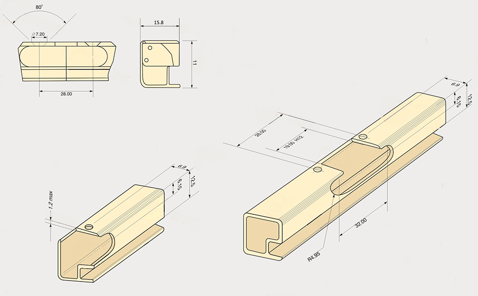 Pánt alu rugó nélkül, klippes. A téglás horonymarás mérete kb. 18x16mm.