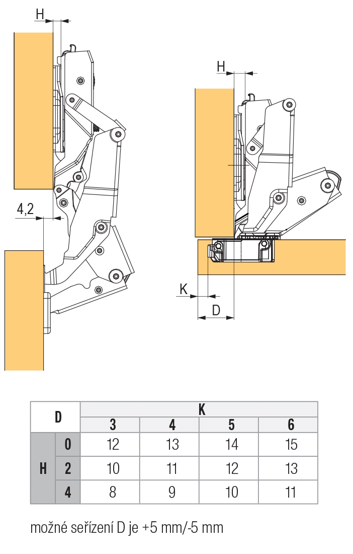 Pánt ráütődő 155 °, nullás átnyúlással, csillapítással, kapcsokkal. Az ajtó és a szekrény közötti rés beállítása az excenter segítségével. 90 ° -ra történő kinyitáskor az ajtó teljesen a szekrény belsejében található. Pántok 155 ° - ra vannak terhelve. Az ajtó és a szekrény közötti rés lehetővé teszi az excenter felhasználását. 90 ° -on belül kinyitáskor az ajtó teljesen egy szekrény belsejében található.