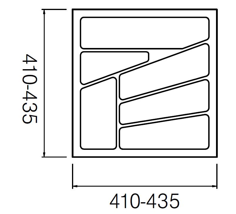 Külső méret 430X435, rövidíthető: 410X410, 6 rekesz. Az anyag vastagsága 1, 6 MM