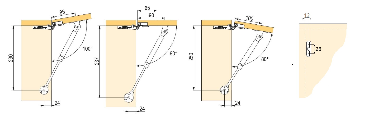 Gázrugós automatikus felnyitó 100N rögzítő elemekkel. Szín: ezüstös szürke.