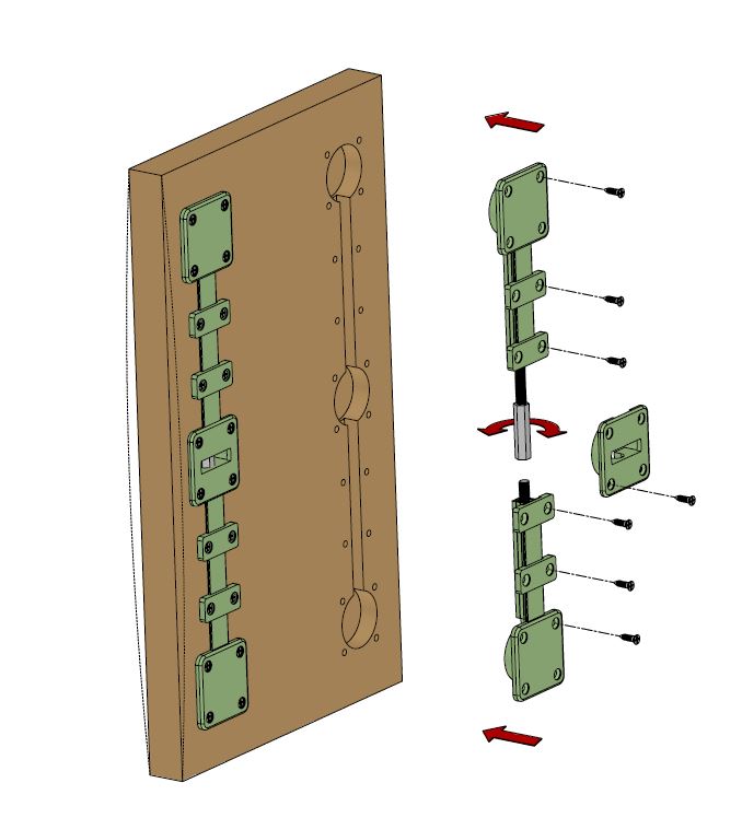 Használat: tágulási szerelvény a szekrényajtók megereszkedésének megakadályozására. Szín fehér + műanyag részek fehér. DTDL 18mm-en. Vájat mélysége 10mm, szélessége 10mm, végátmérő 35mm, mélység 12mm. A menetes rudakat meg lehet rövidíteni. 750 mm-es ajtószélességhez egy darab elég, szélesebb ajtóhoz 2 darab. Telepítés. A középső sapka mindkét oldalán 5 mm-es tágulási térrel rendelkezik. Rögzítse a kupakokat a mellékelt fogantyúkkal. Možno krátit po celé délce.