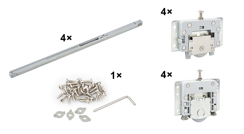 StrongLine Piato vasalatkészlet tolóajtókhoz, 2 szárny, 50 kg, csillapítással