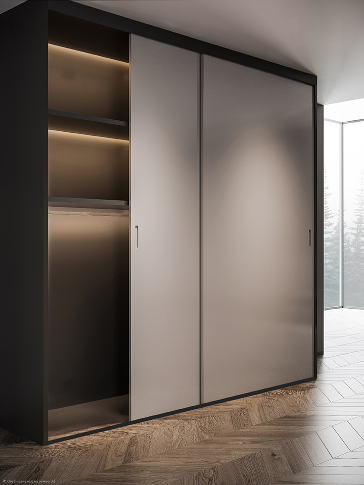 Az ajtók egyenletes és biztonságos mozgása. A kocsikon elhelyezett kefék automatikusan eltávolítják a port és a szennyeződéseket a vezetősínből.