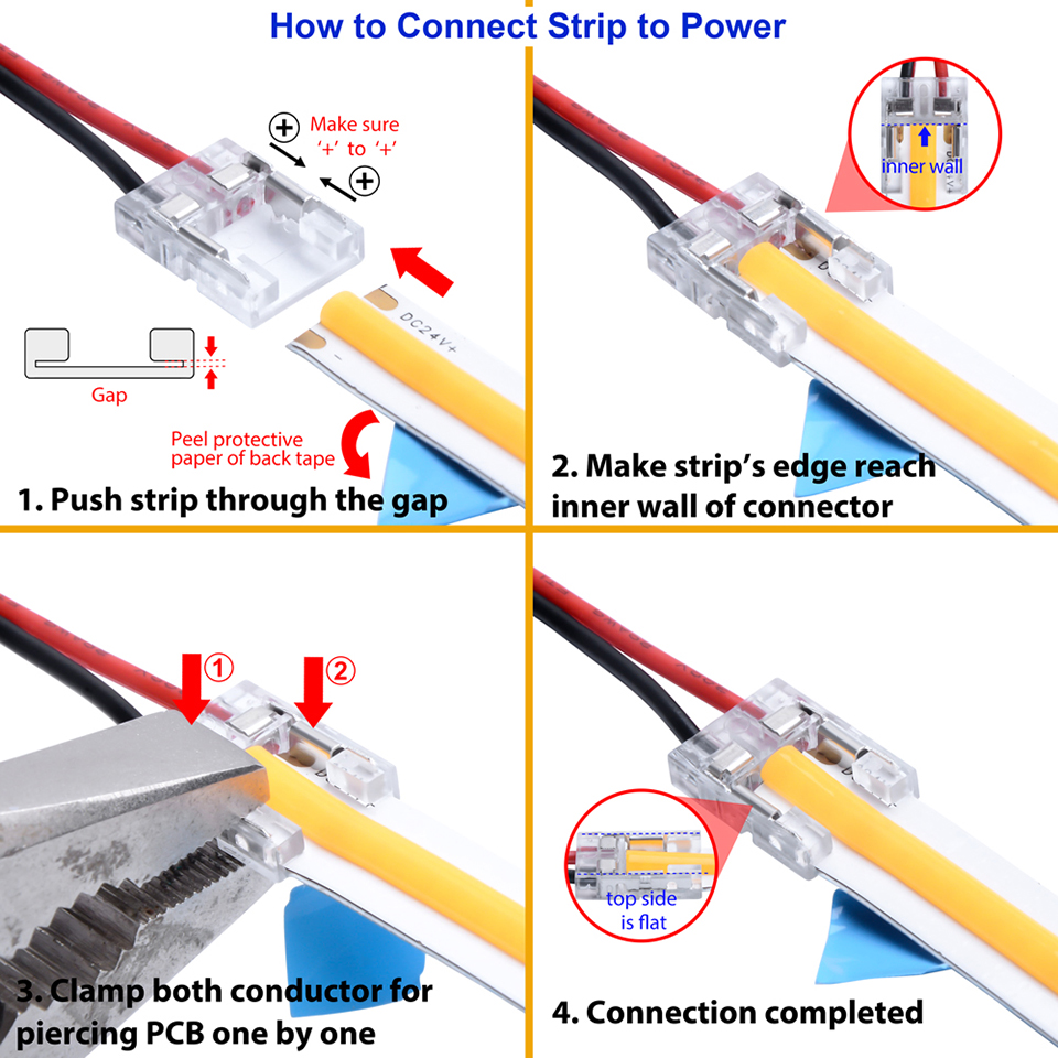 StrongLumio gyorscsatlakozó, 10 mm egyszínű LED szalag - 2 eres kábel