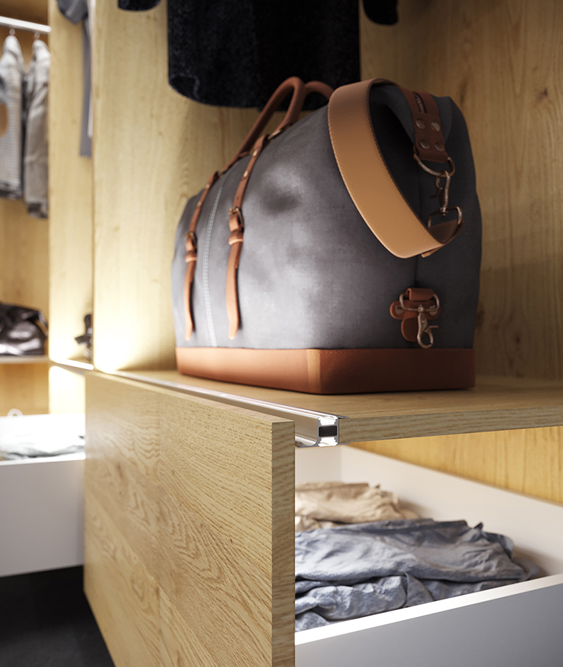 LED profil a bútorlap élére való ráütéshez. A LED szalagok felső/alsó elhelyezésének lehetősége. Takaróprofilok - 198517 (átlátszó), vagy 221008 (tejfehér). A profil elülső széle rugalmas gumi ütközővel van ellátva. A profilt fogantyú nélküli konyha berendezésekhez is lehet használni.