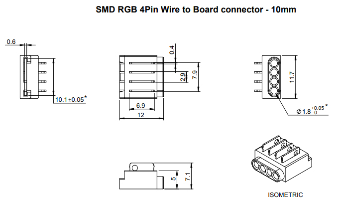 Spojka pro spojení RGB LED pásek - kabel (čtyřlinka). Vhodné pro LED pásky šířky 10mm viz. Související sortiment. Spojka se na LED pásek nasadí a pomocí kleští se přitlačí kontaktní trny do LED pásku, kdy se trny poté do LED pásku zaříznou. Spojka je tedy určena pro jedno použití. Pro použití v profilech o min. šířce 12mm a výšce 5,1mm.