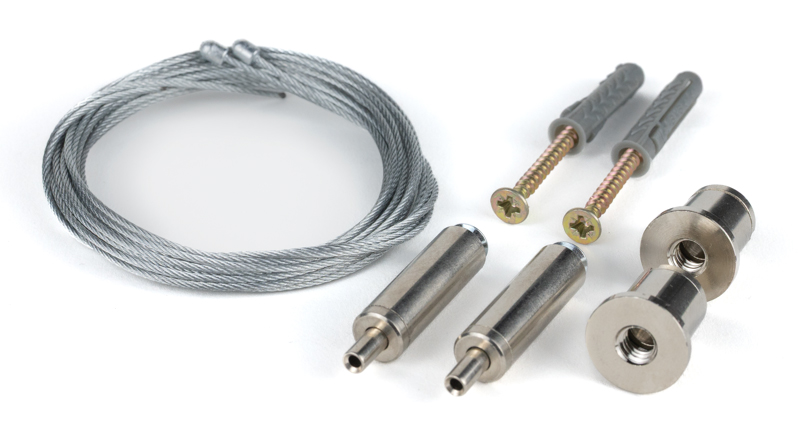 Sada dvou závěsných lanek pro profily Maglyte. Sada obsahuje: 2x lanko, 2x závěsný systém ke stropu, 2x upevňovací systém k profilu. Barva stříbrná.