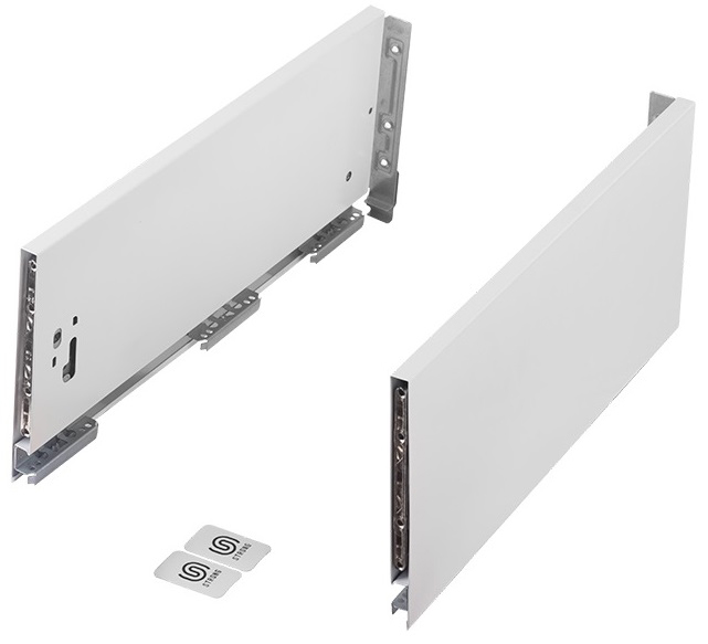 Oldalfal készlet (bal + jobb) integrált hátfal konzolokkal. Az elülső konzolok az oldalfalba vannak bepattintva.