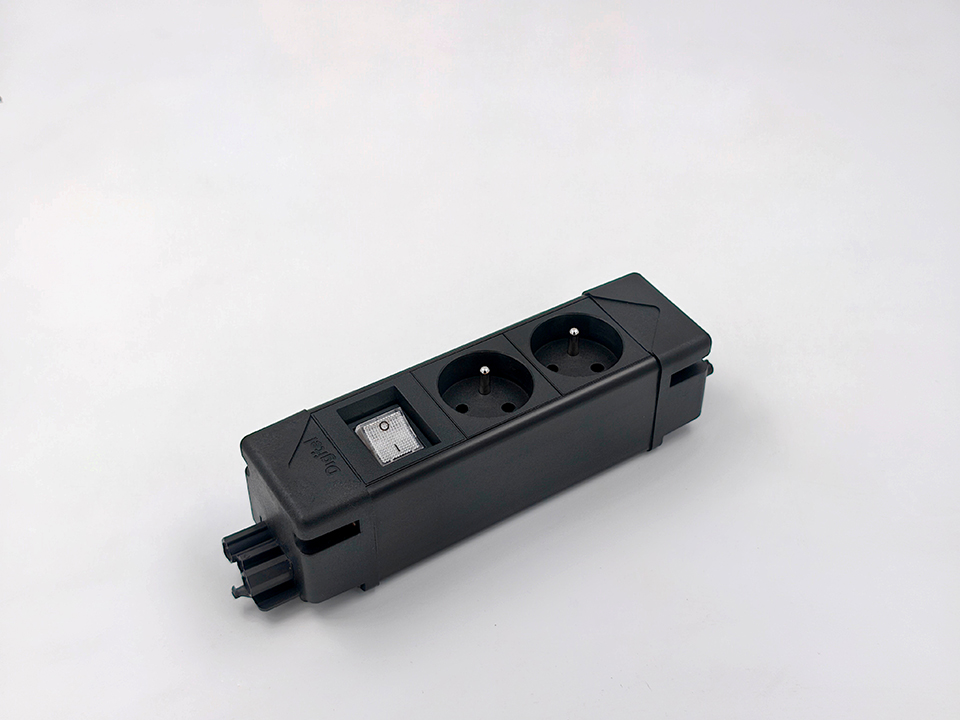 StrongPower elektromos dugaljzat UnderDesk, 2x FR, kapcsoló, fekete