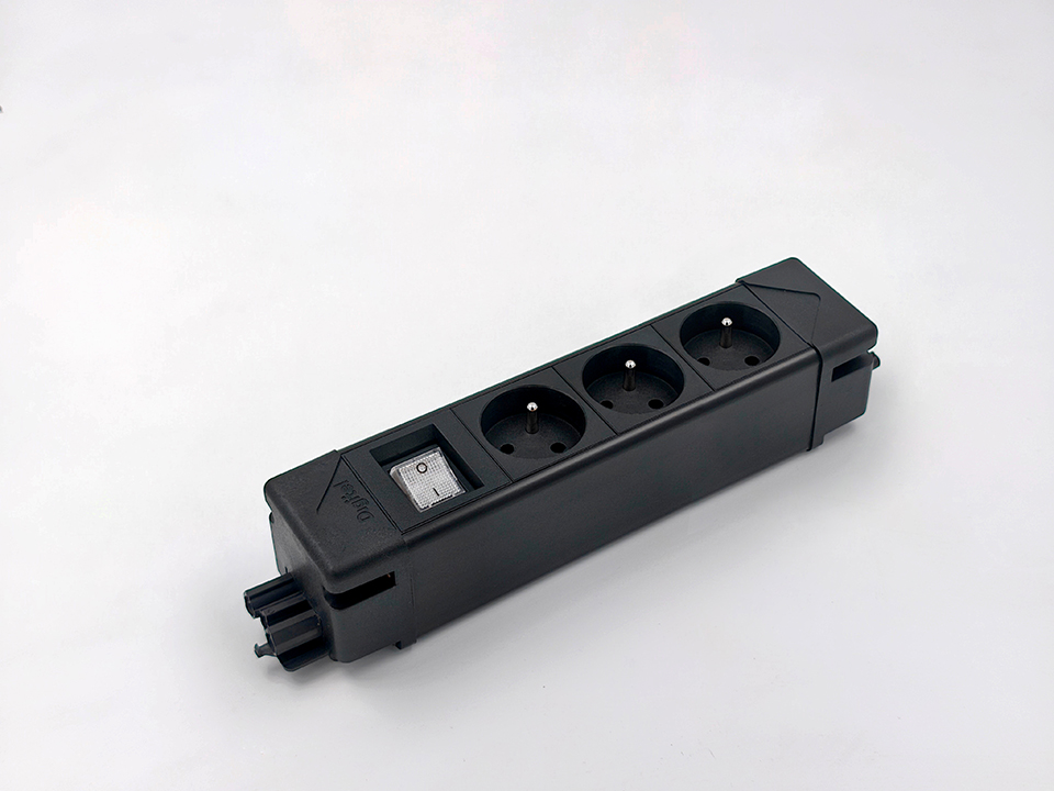 Jednoduché přípojné místo k připevnění pod desku nebo pomocí vrutů kamkoli jinam Možnost propojení několika zásuvek za sebe pomocí kabelu GST18