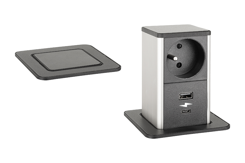StrongPower PowerUp konnektor, 1x230V, USB A/C töltó, Fekete, FR