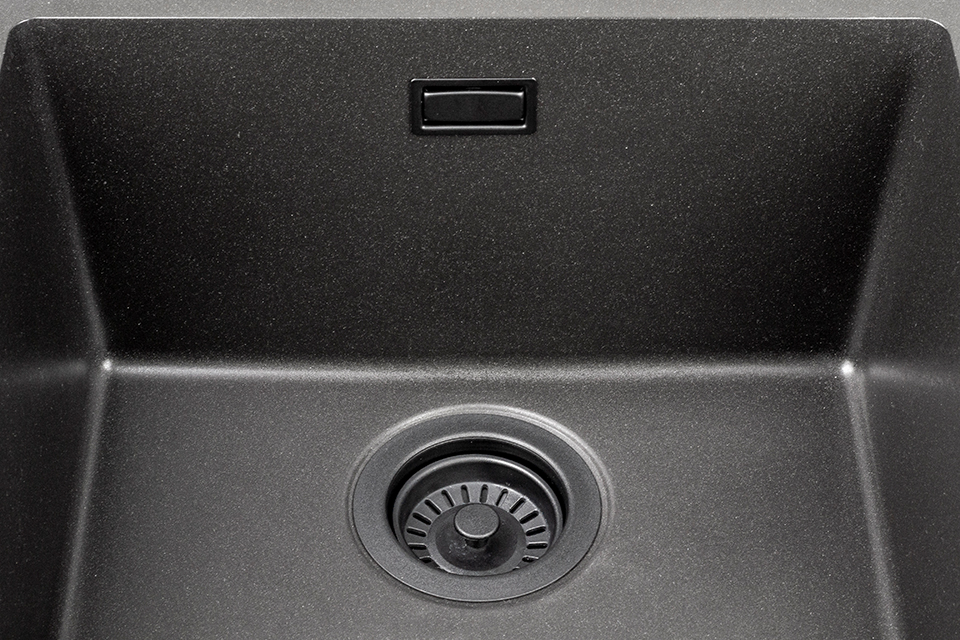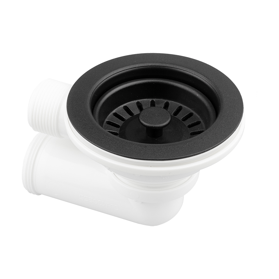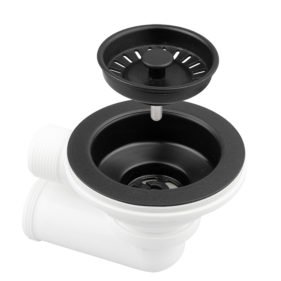 StrongSinks S3 Helytakarékos szifon gránit mosogatókhoz, fekete szelep szűrővel