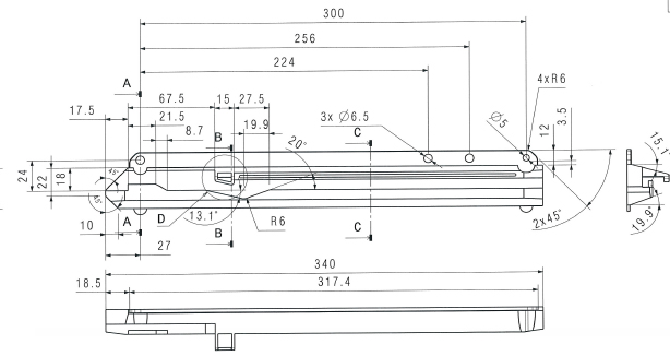 Plastic slide Flex for 18mm cabinet anthracite