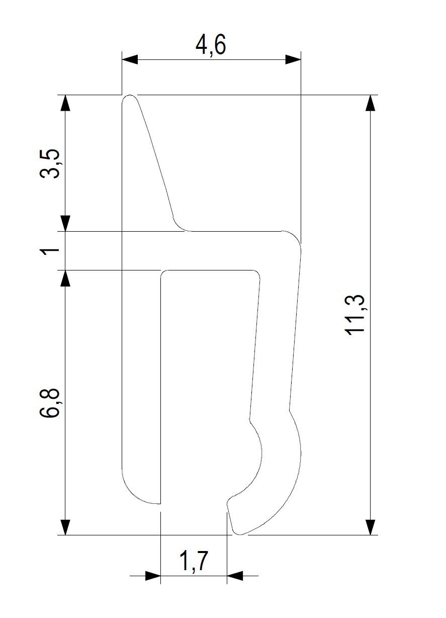 Oldalsó profil evőeszköztartókhoz; vastag.: 1,6 - 2,5 mm (például a Scoop II, Move, Strong evőeszköztartókhoz)