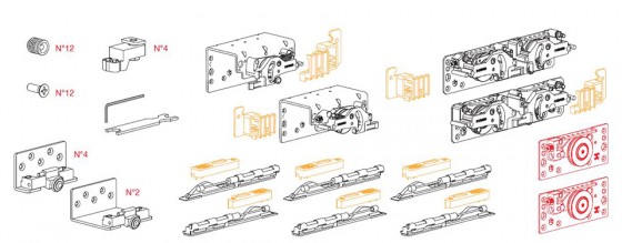 Vasalat szett 3 szárnyra hozzátartozó légcsillapítókkal (6 db) Lemezvastagság max.25mm. szárny terhelhetősége 40 - 80 kg. Min.szárny szélesség - 600mm. Megjegyezzük, hogy az ilyen típusú szerelvényeknél a szárny felfüggesztése a súlyponttól függ, és szárnyelhajlás fordulhat elő(általában a terhelt rendszerekre vonatkozik). A feszültségek kiegyenlítődése 88040 - süllyesztett és DT157 - több mint 2,3m - megerősítettek nagyobb feszültségekhez (kat.2014 str. 5.80).