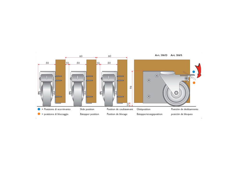 TERNO görgő fékkel balra art. 306/S