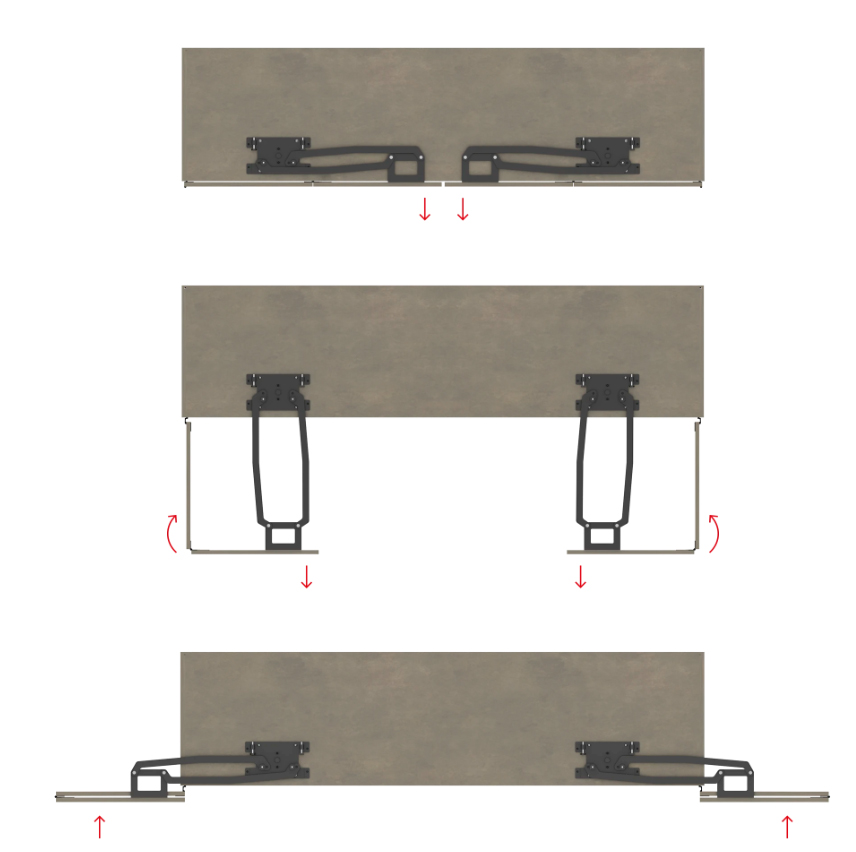 Complete set of fittings for 2 folding doors For cabinet body 1122mm (+- 2mm). Width of 1 wing 547mm (+- 1mm). Overlap 5 - 12 mm, depending on the thickness of the cabinet sides. Maximum weight of both wings - 35 kg. Door thickness 18 - 22 mm. Color white RAL9002, powder coating.