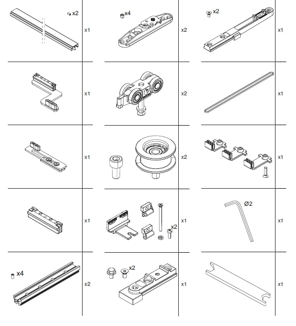 TERNO T-Belt Universal sada kování pro prostřední dveře 80kg černá