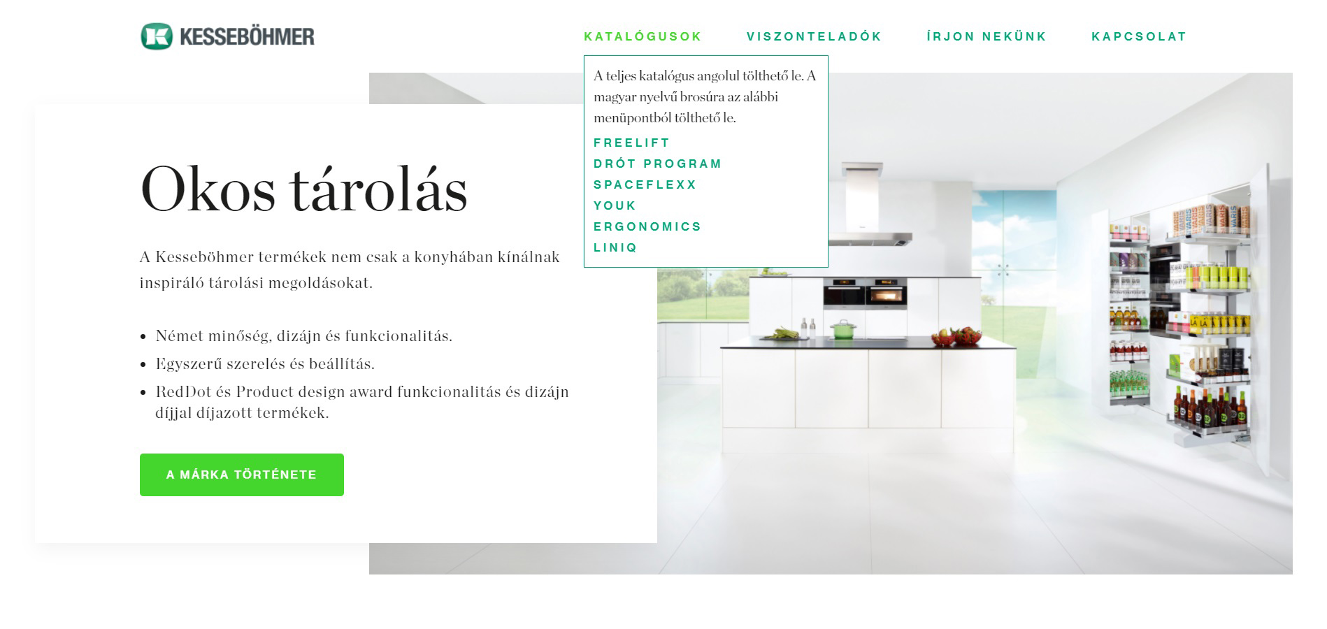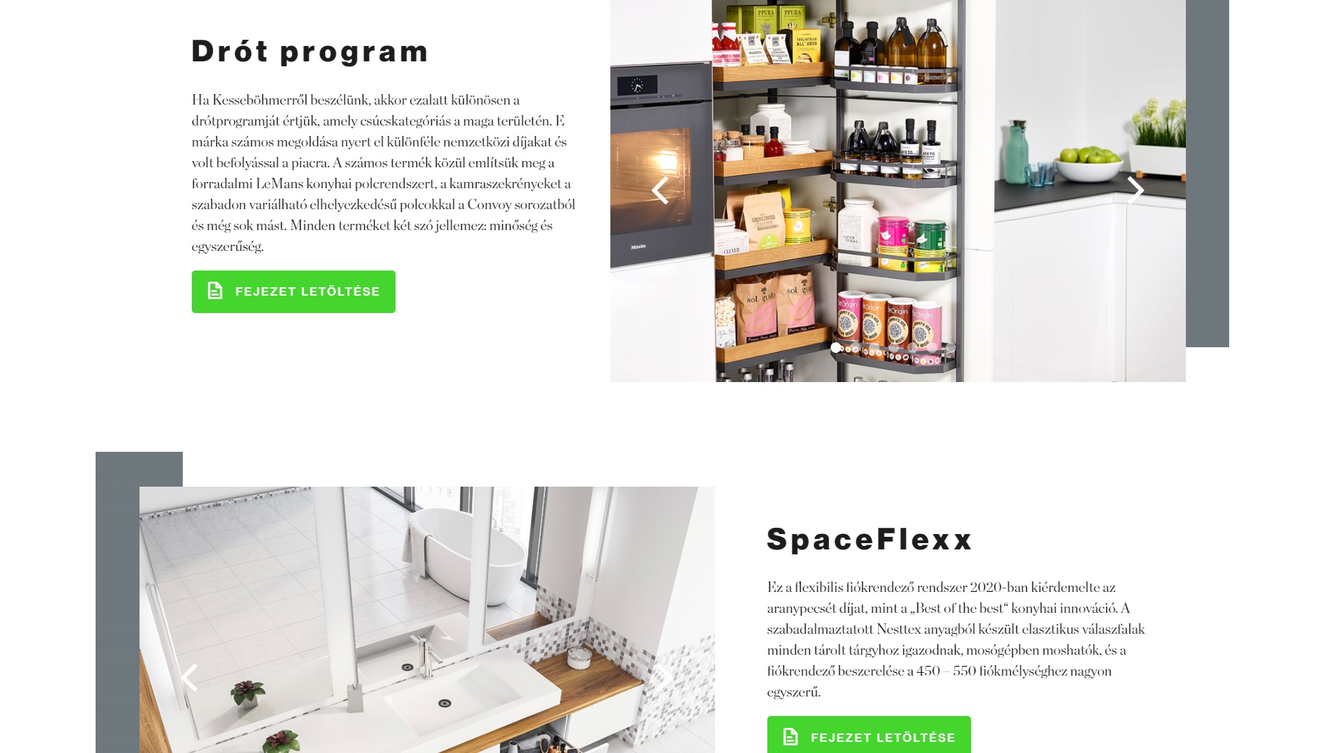 A www.kesse.hu oldalon megoldásokat talál a konyhában, az irodában és a nappaliban található tárolóhelyekhez. Egyszerűen segítenek az organizációban, és a még nagyobb rend és rendszer elérésében a háztartásban. Vessen egy pillantást a különféle tárgyak tárolására vonatkozó tippekre, a jobb hozzáférhetőségükre, a tér ergonómiájára, de a funkcionalitásra és a kényelemre is. A konyhák számára az oldal különféle kihúzható kosarakat és polcokat kínál az alsó és a sarokszekrényekhez vagy a kamraszekrényekhez. Ezen termékek közül sok felhasználható például a fürdőszobában is. Találhat továbbá evőeszköztartókat és osztópaneleket a fióktér jobb elrendezéséhez, felnyíló mechanizmusokat a felső szekrények ajtajaihoz. Az irodákba pedig asztallábazatokat és kihúzható iratszekrények okos megoldásait.