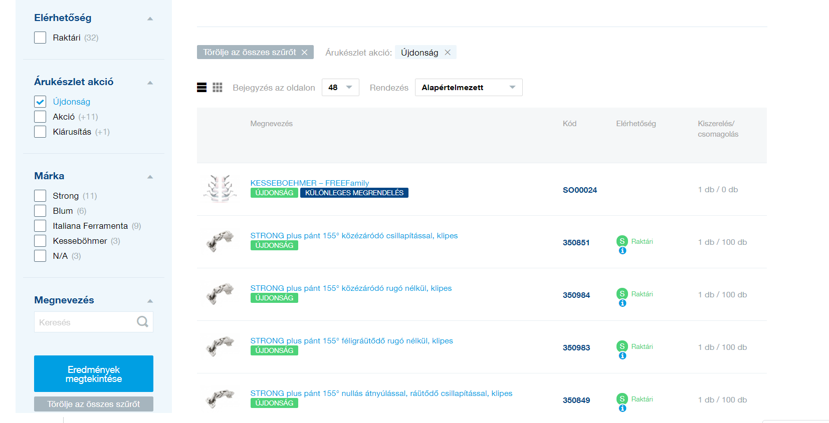 Újdonságágainkat könnyen megtalálja az Újdonság szűrő használatával.