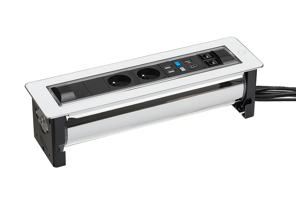 A Versaturn egy elektronikusan vezérelt, modern kialakítású elektromos aljzat, melyet irodákban, tárgyalókban vagy szállodákban íróasztalokba lehet telepíteni.