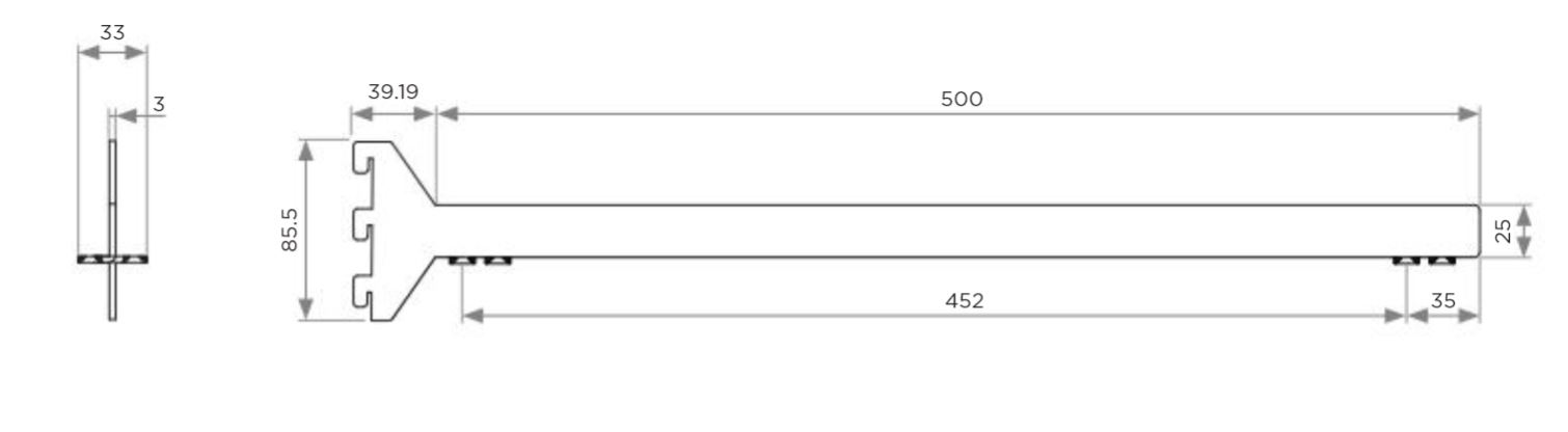 Držák police se spodní montáží středový (tloušťka police max 25mm), délka 500mm, barva tmavě hnědá.